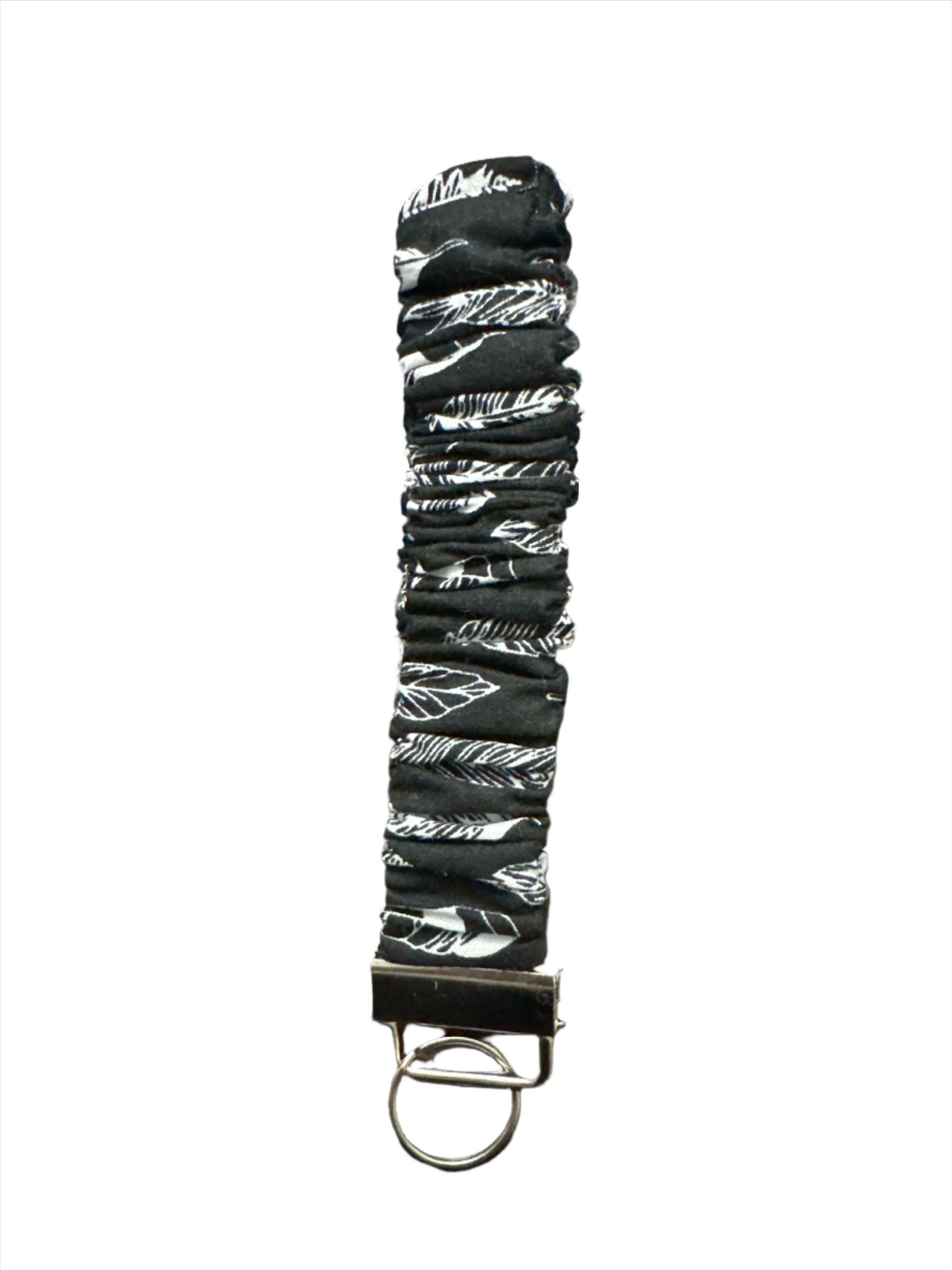 Elevate your key-carrying game with this stylish and practical wristlet keychain, designed to keep your keys handy and accessible at all times. Made with cotton fabric and a stretchy elastic band, this scrunchie style keychain allows you to wear it comfortably around your wrist or higher up on your arm for a trendy touch.