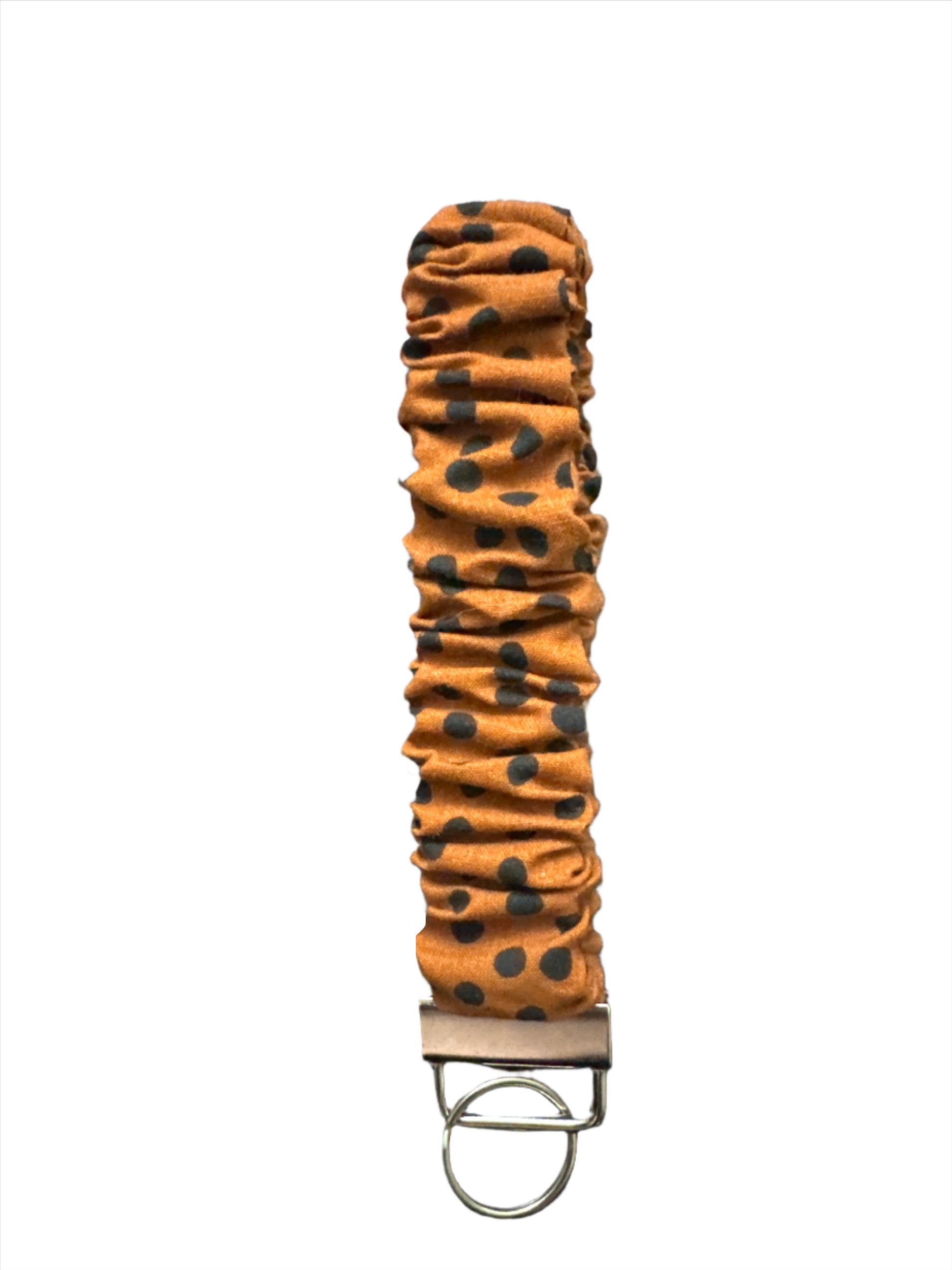 Elevate your key-carrying game with this stylish and practical wristlet keychain, designed to keep your keys handy and accessible at all times. Made with cotton fabric and a stretchy elastic band, this scrunchie style keychain allows you to wear it comfortably around your wrist or higher up on your arm for a trendy touch.
