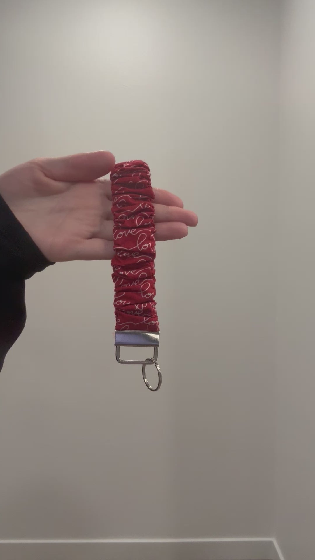 Elevate your key-carrying game with this stylish and practical wristlet keychain, designed to keep your keys handy and accessible at all times. Made with cotton fabric and a stretchy elastic band, this scrunchie style keychain allows you to wear it comfortably around your wrist or higher up on your arm for a trendy touch.