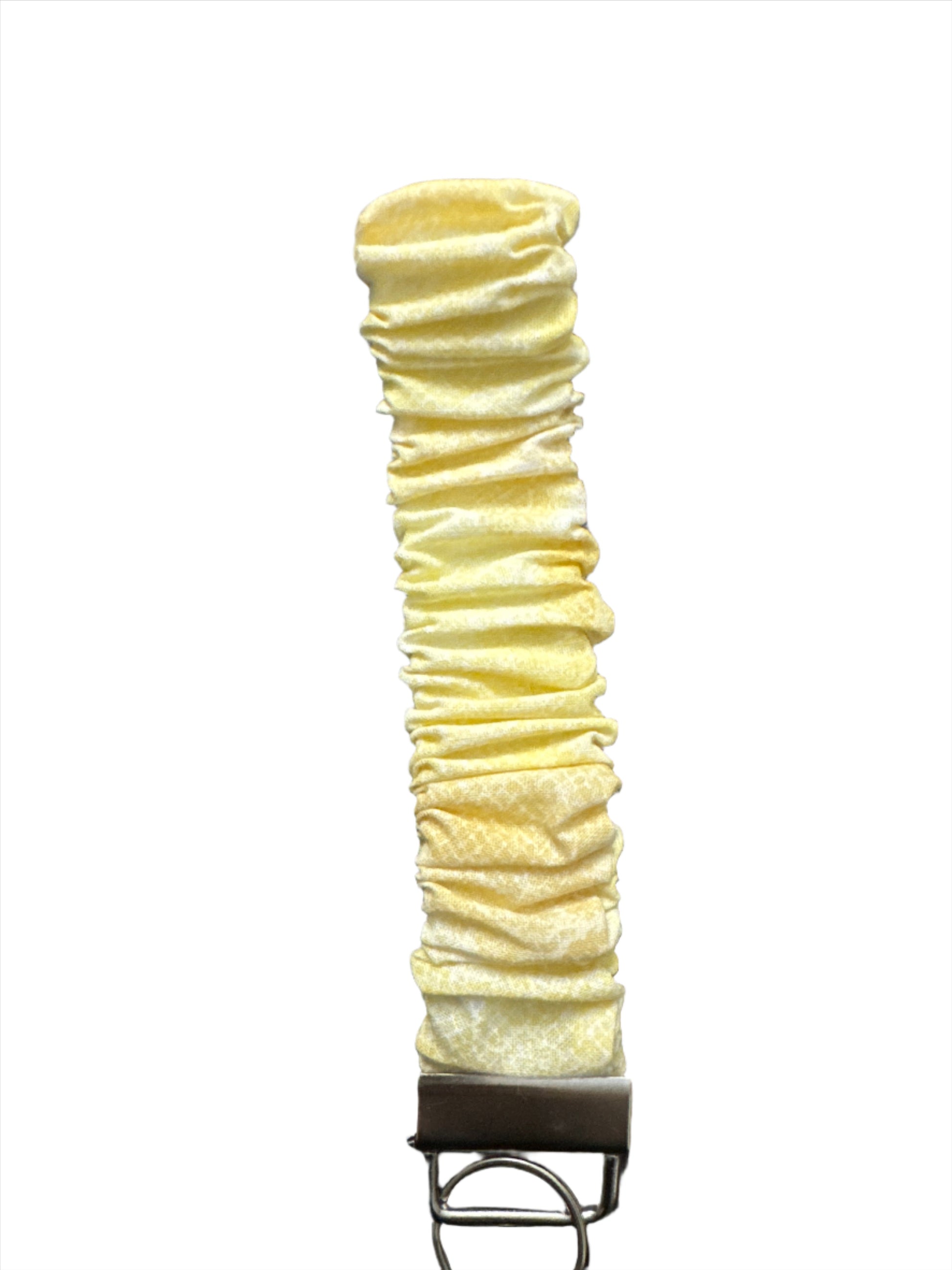 Elevate your key-carrying game with this stylish and practical wristlet keychain, designed to keep your keys handy and accessible at all times. Made with cotton fabric and a stretchy elastic band, this scrunchie style keychain allows you to wear it comfortably around your wrist or higher up on your arm for a trendy touch.