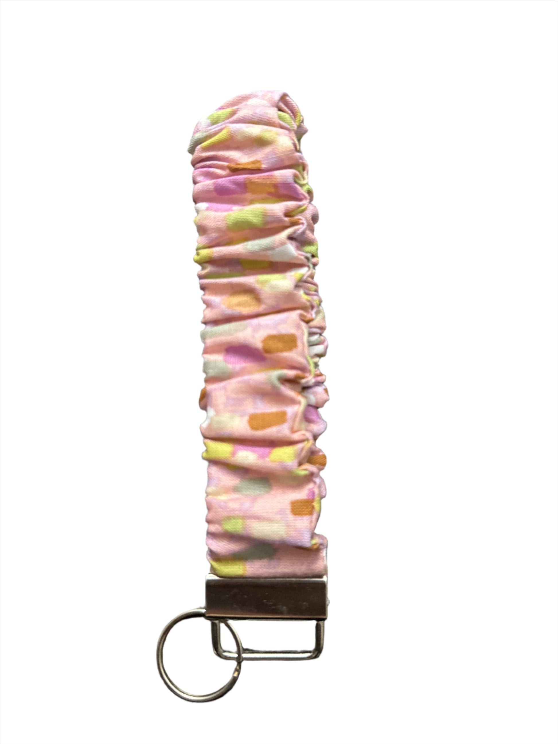 Elevate your key-carrying game with this stylish and practical wristlet keychain, designed to keep your keys handy and accessible at all times. Made with cotton fabric and a stretchy elastic band, this scrunchie style keychain allows you to wear it comfortably around your wrist or higher up on your arm for a trendy touch.