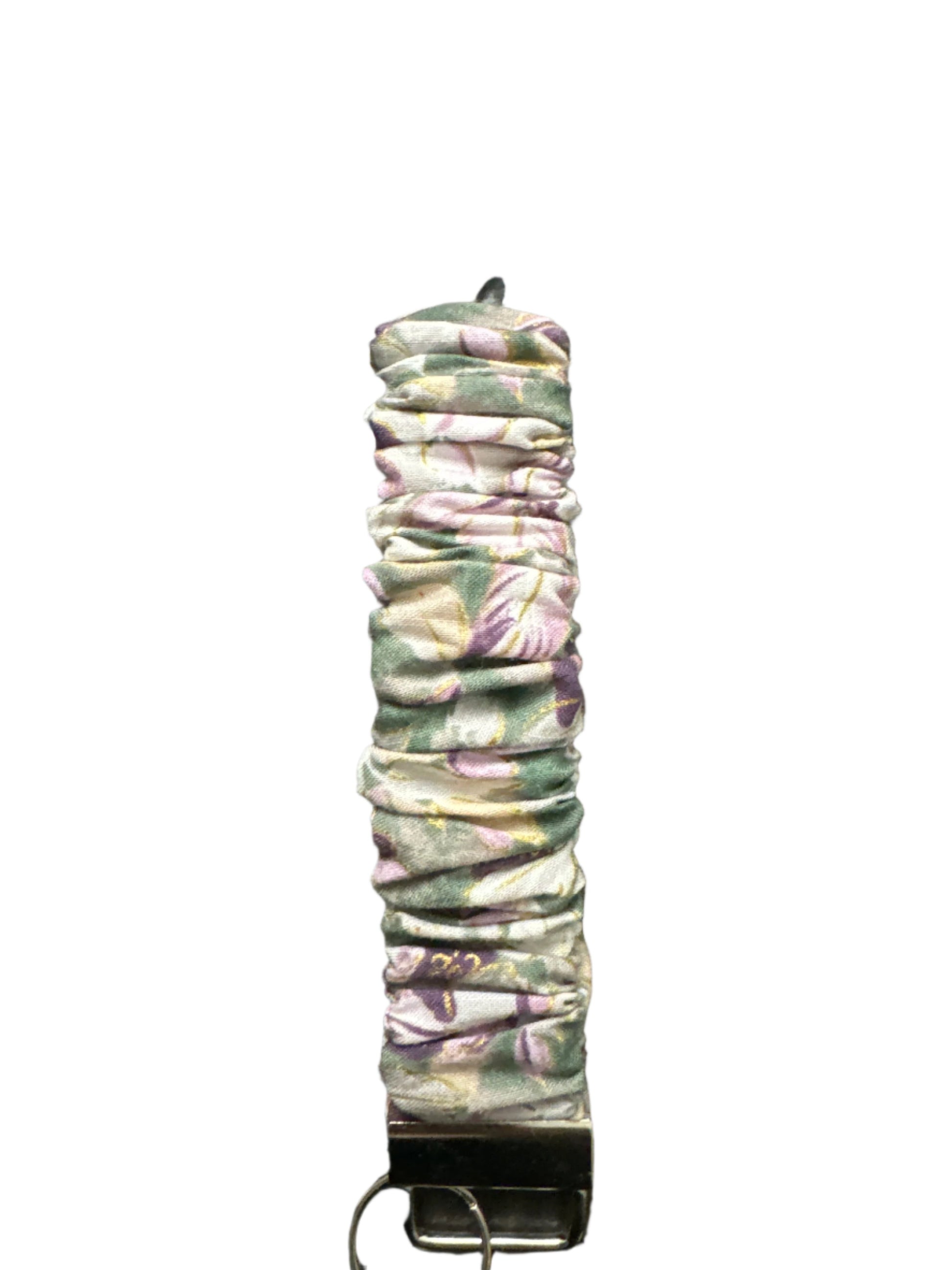 Elevate your key-carrying game with this stylish and practical wristlet keychain, designed to keep your keys handy and accessible at all times. Made with cotton fabric and a stretchy elastic band, this scrunchie style keychain allows you to wear it comfortably around your wrist or higher up on your arm for a trendy touch.